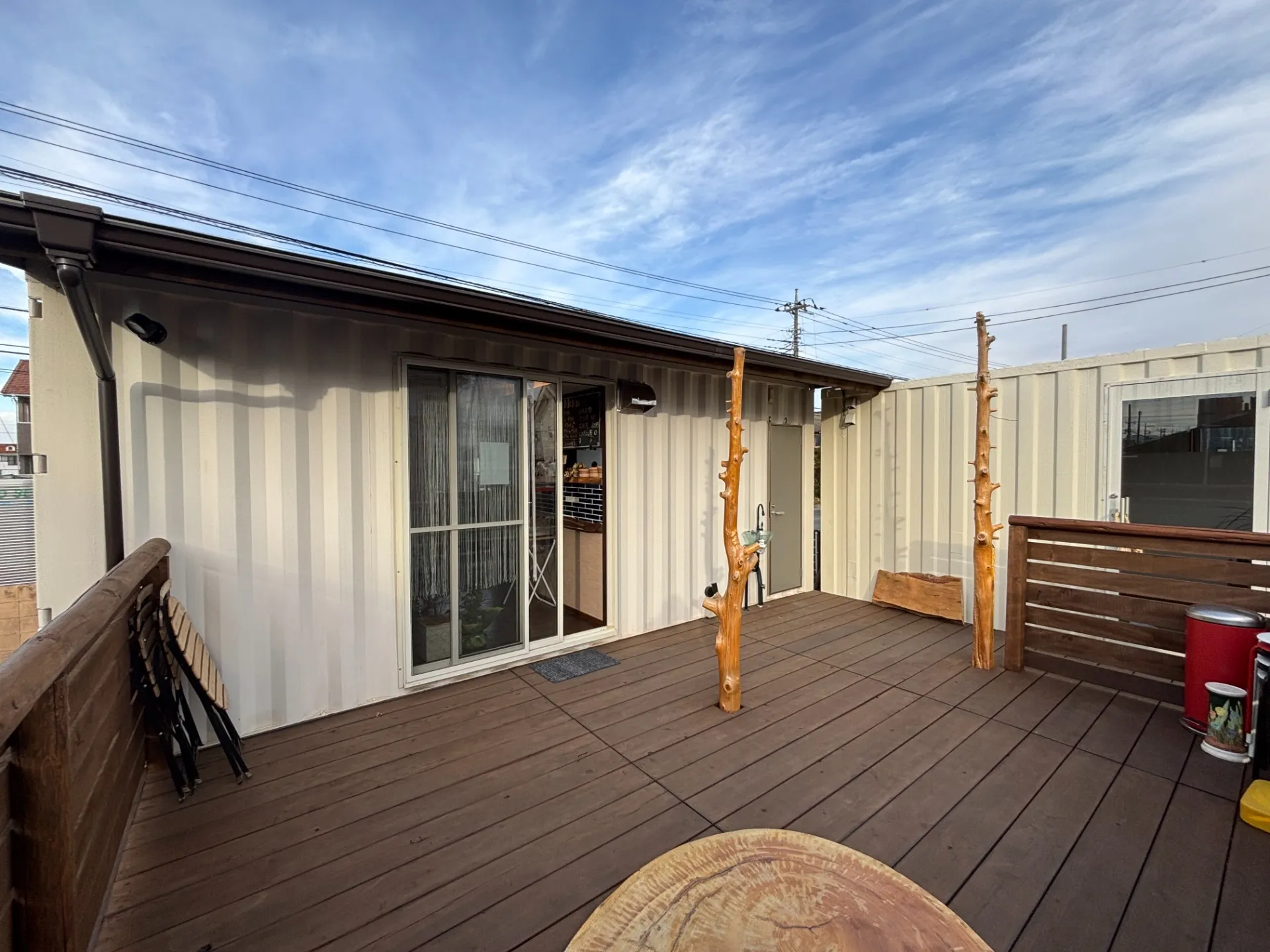 海上コンテナを活用したユニークな外観と、木材の温もりに包まれた和の空間が融合したカフェを運営しております。日々の忙しさから少しだけ離れ、自分自身を労うための時間を過ごしていただくために、心落ち着く内装やこだわりのメニューを提供いたします。忙しい毎日の中でも、気軽に立ち寄っていただけるような場所を目指し、クレープや今川焼、コーヒーなど豊富なラインアップです。